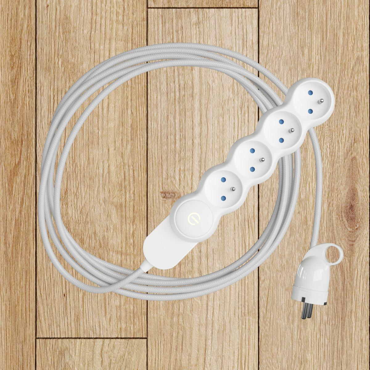 Câble textile : 3.62mt. [XZ15RM01] Fil Électrique De Large Section 3x1,50 Rond - Tissu Effet Soie Blanc RM01