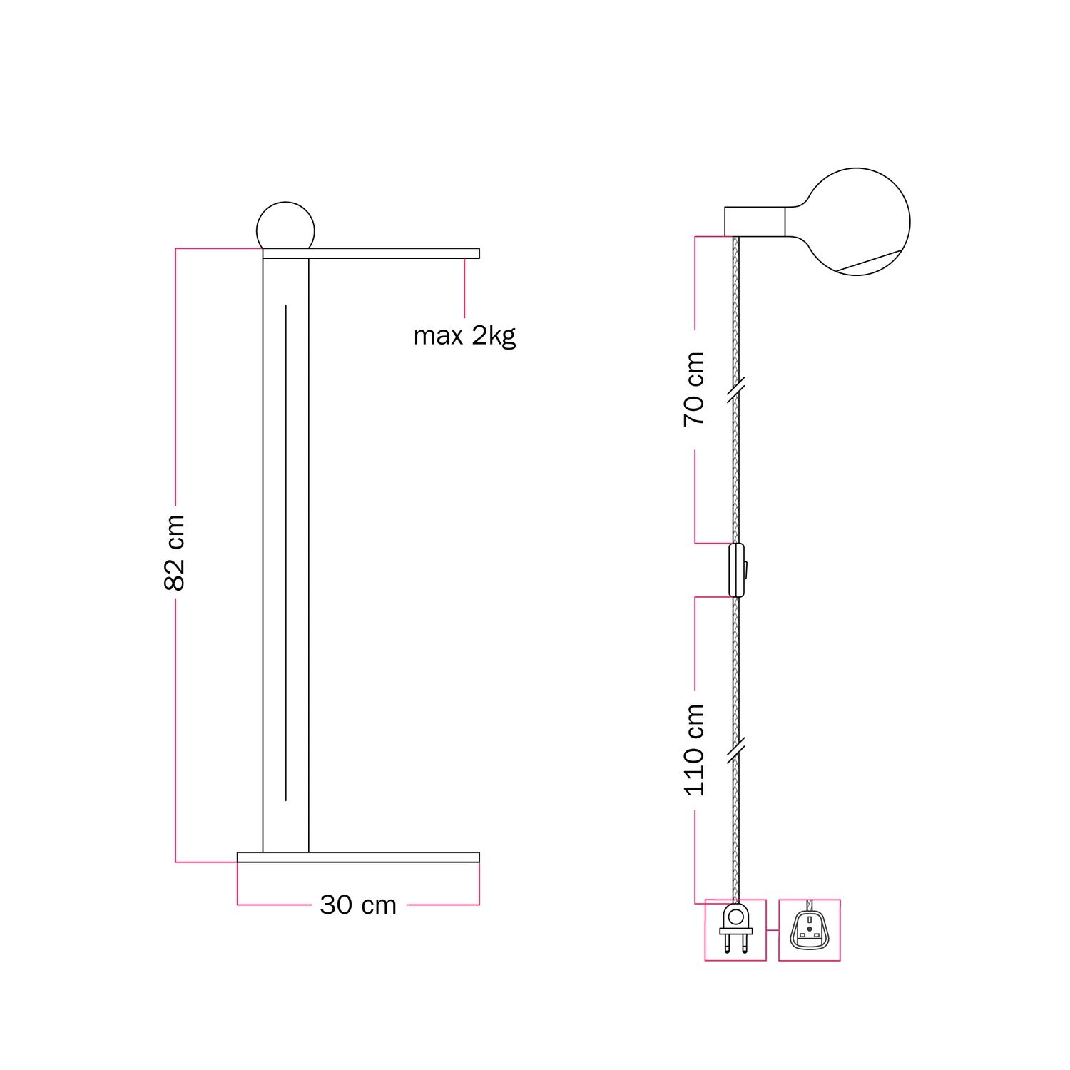 Metal structure: 30x82h cm