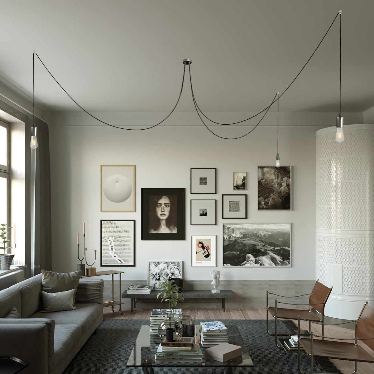 Portalampada: 2° Caduta : 1X [KBM4011BR] Kit portalampada E27 cilindrico in metallo - Cable clamp: Conical, Finitura: Black pearl